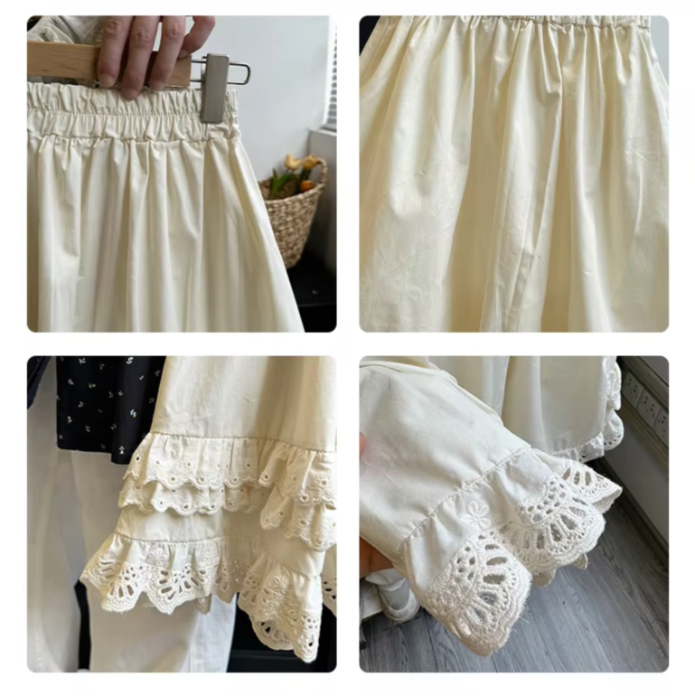 Korean Style Forest Lace Trim: One of the standout features of this skirt is the exquisite forest-themed lace trim that adorns the hem and waistband.