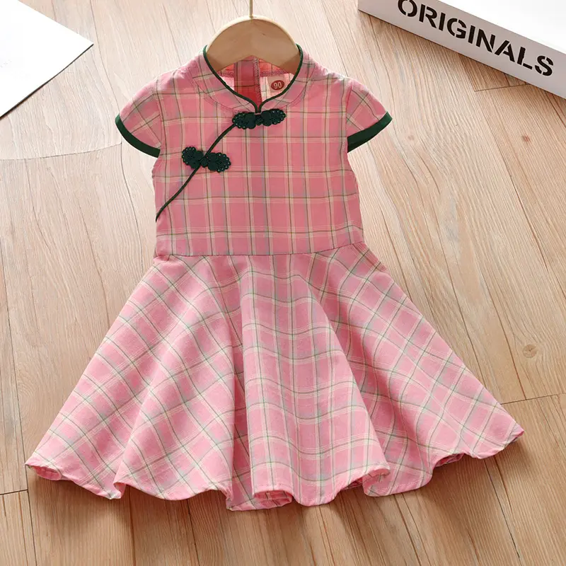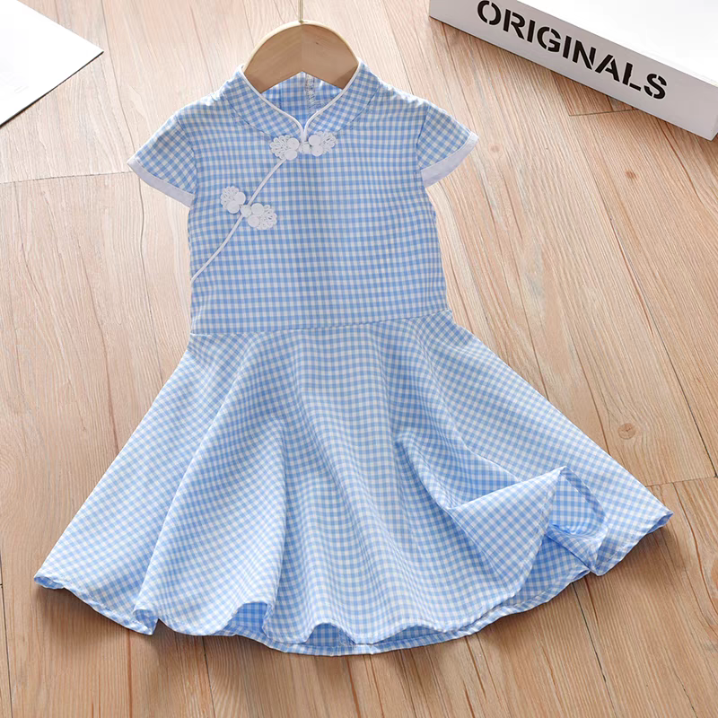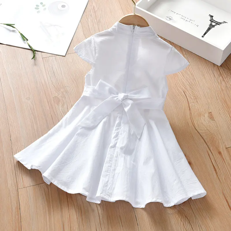 Chinese style buckle short sleeved ancient white dress children’s dress big swing skirt