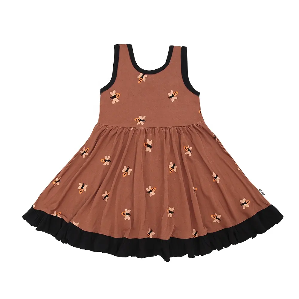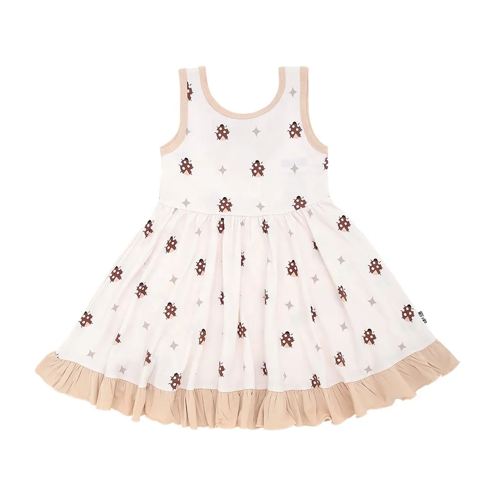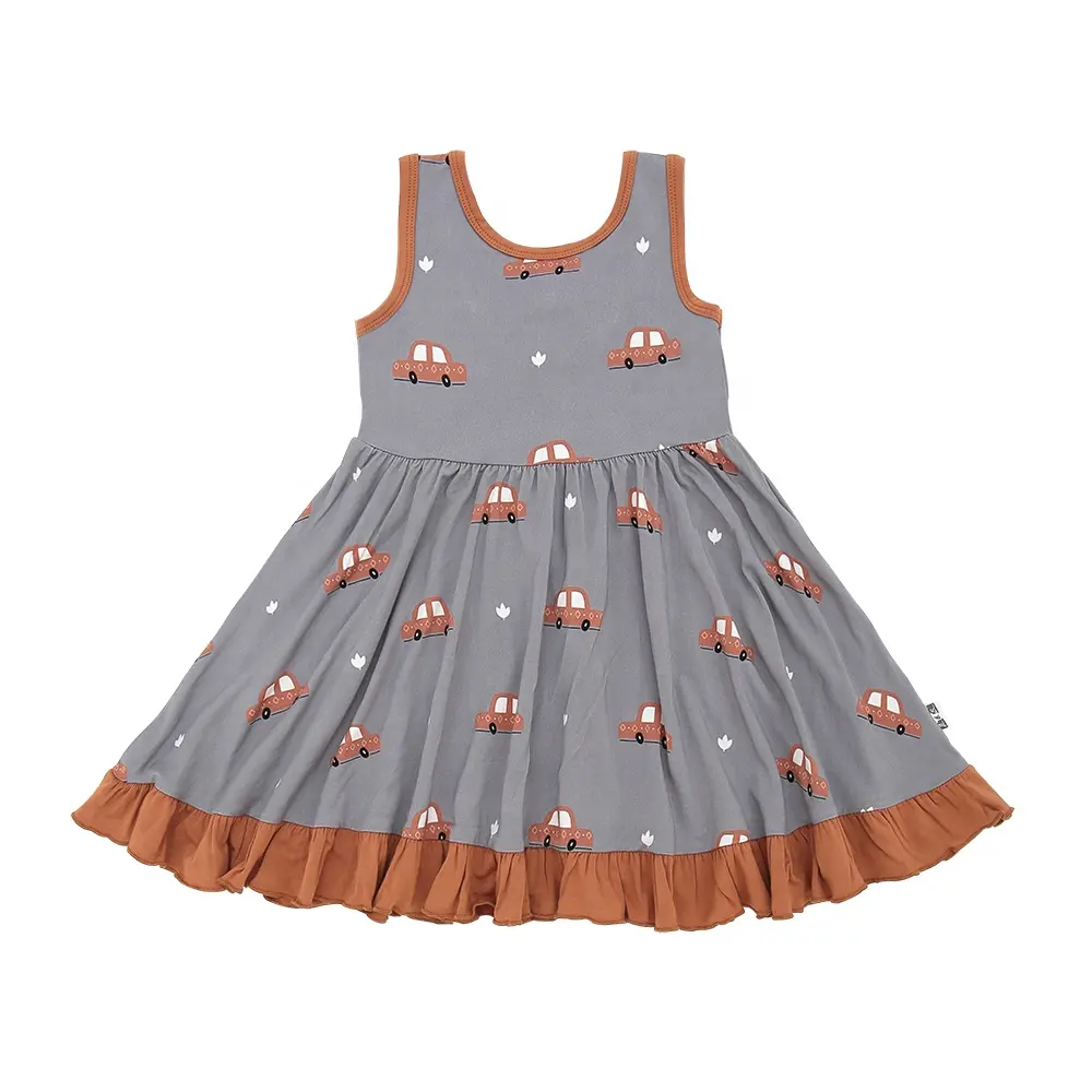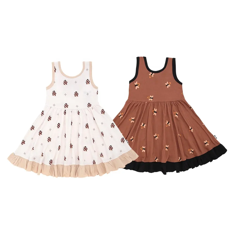 Fashionable Sleeveless Dress for Little Girls Plain Dyed O-Neck Sweet Style Dress