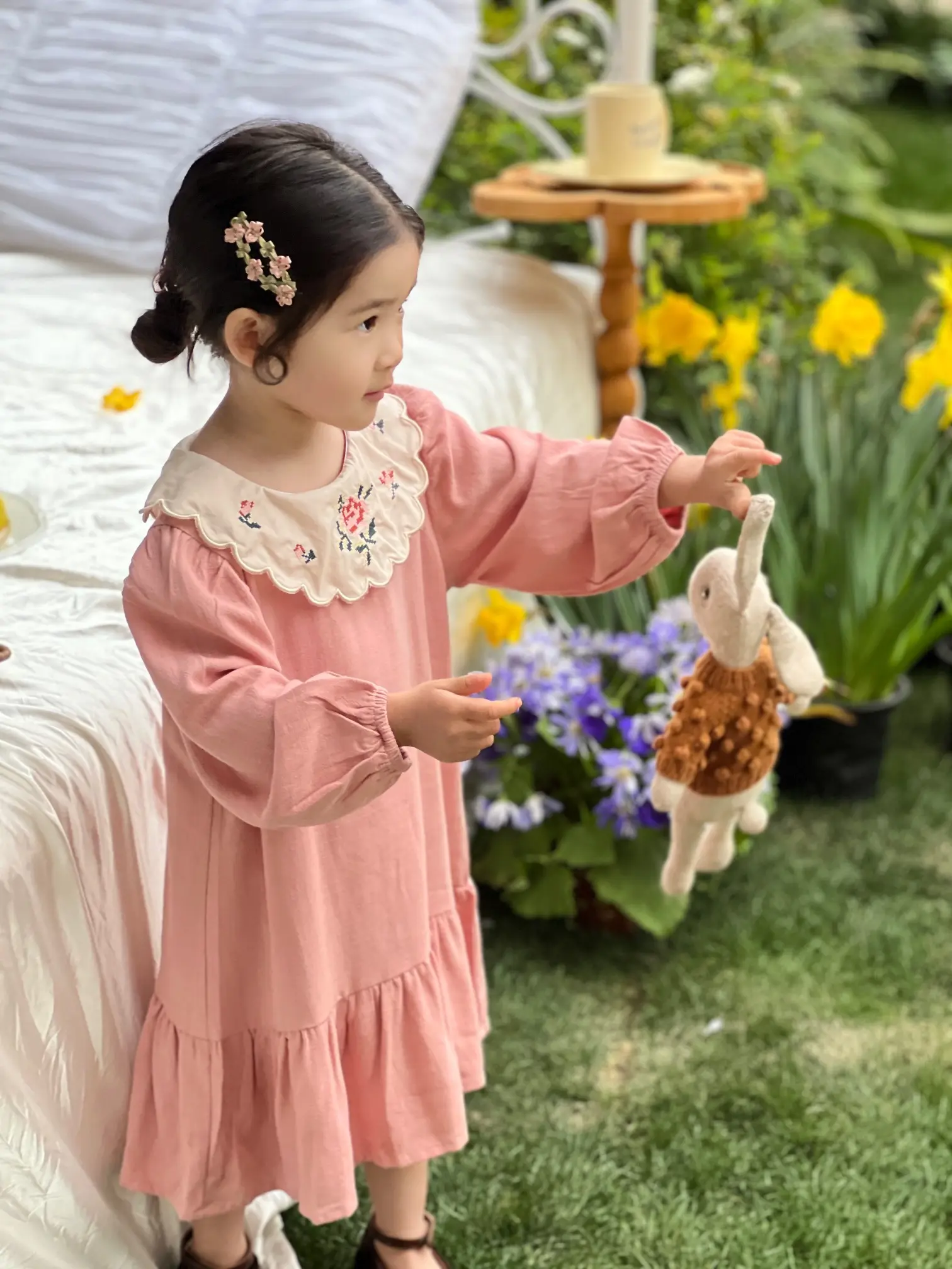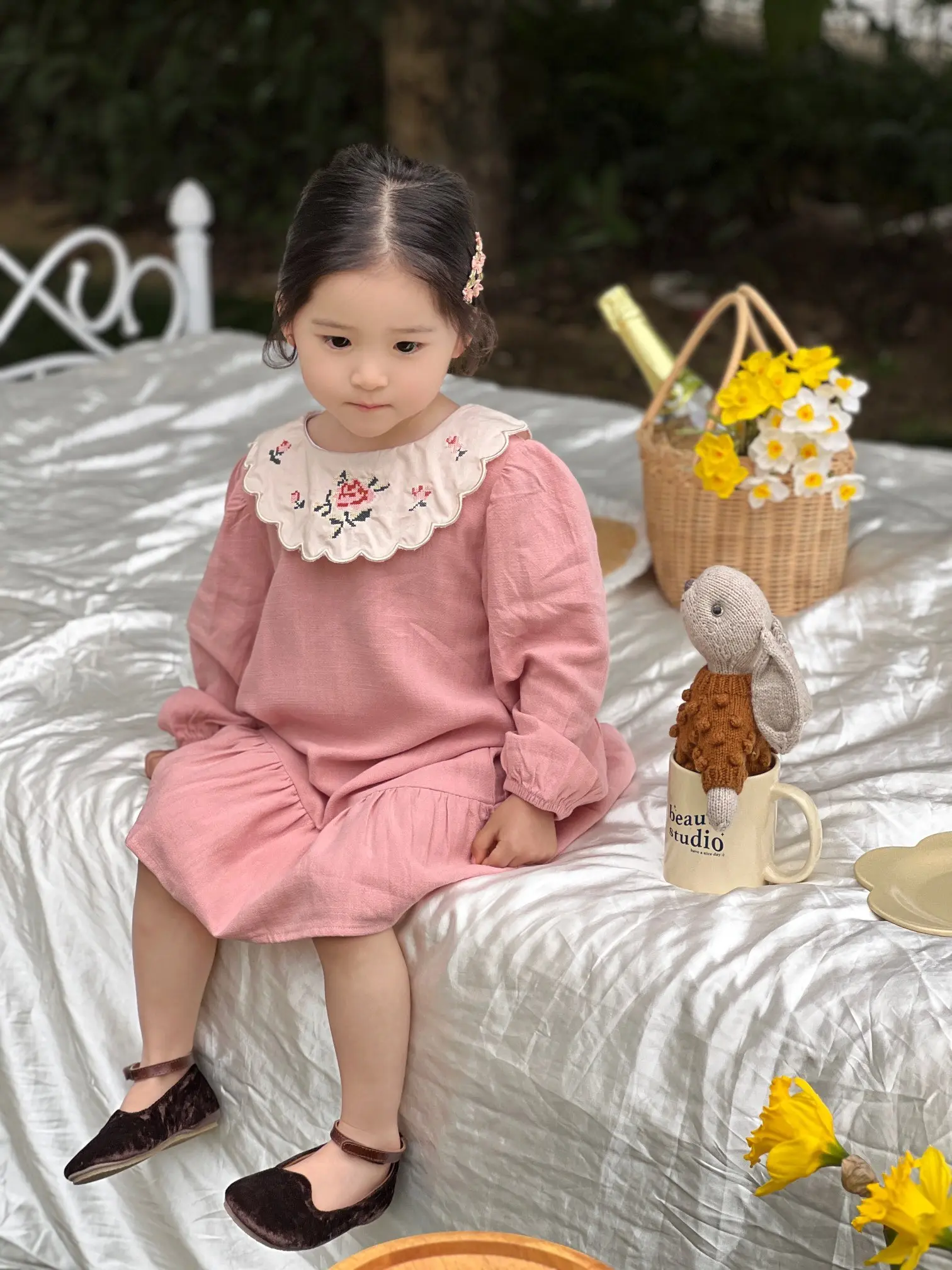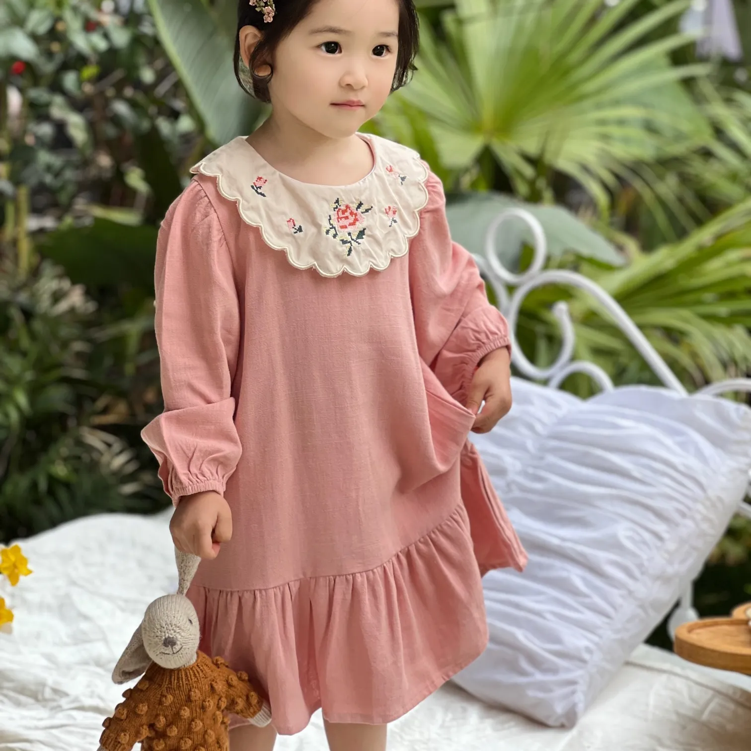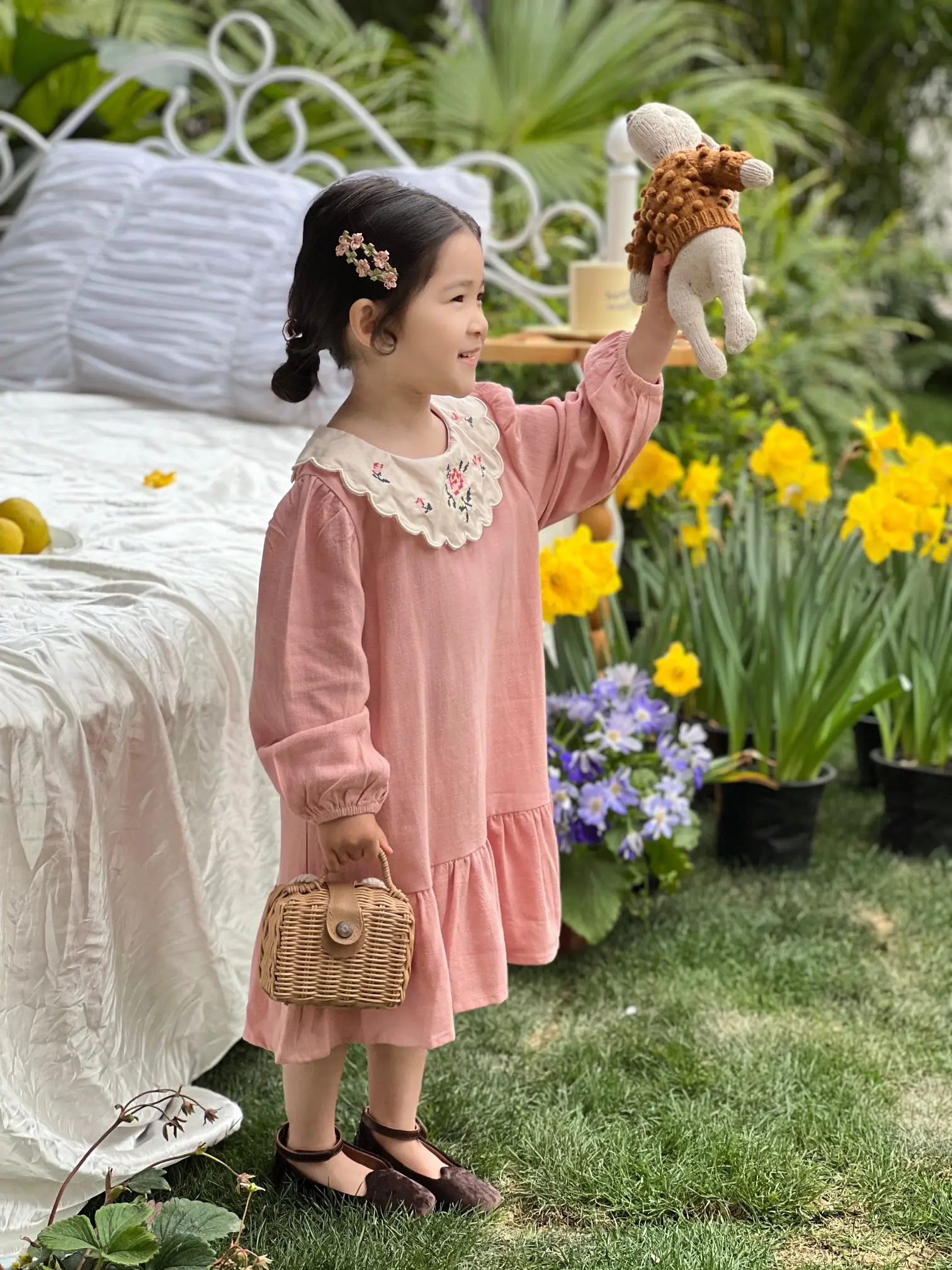 Girls’ Floral Dress Skirt Children’s Pastoral Printed Princess Skirt Dress