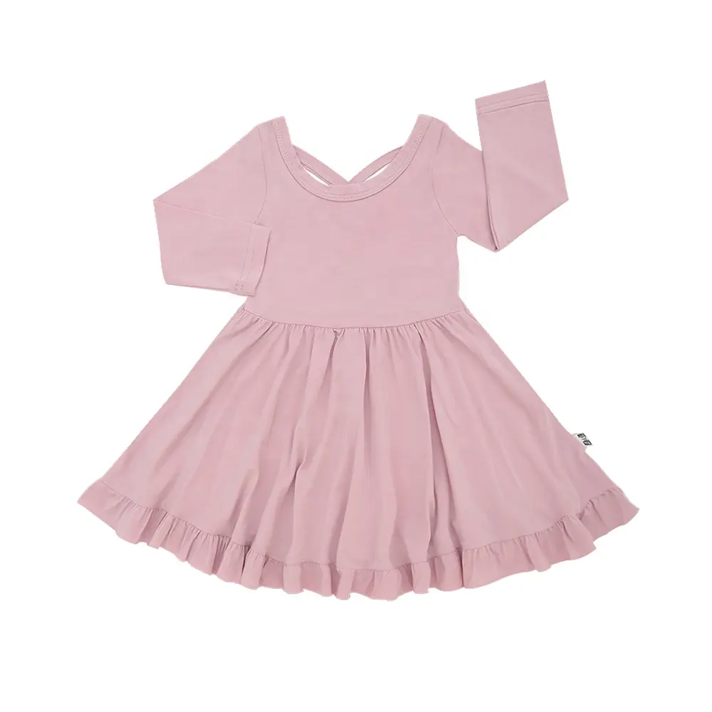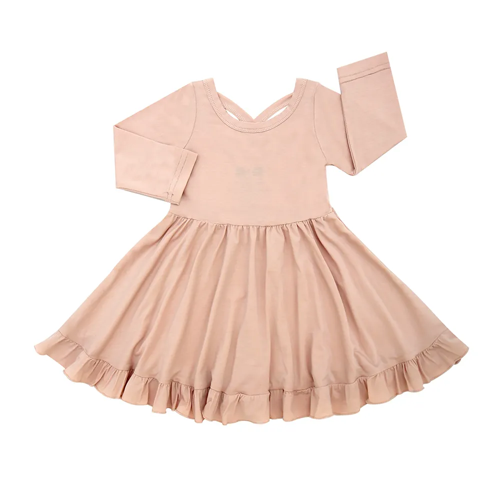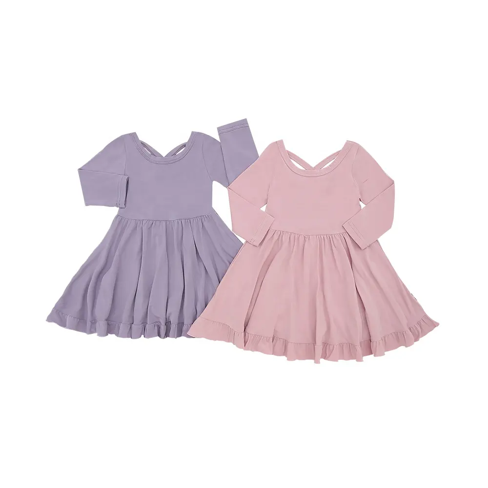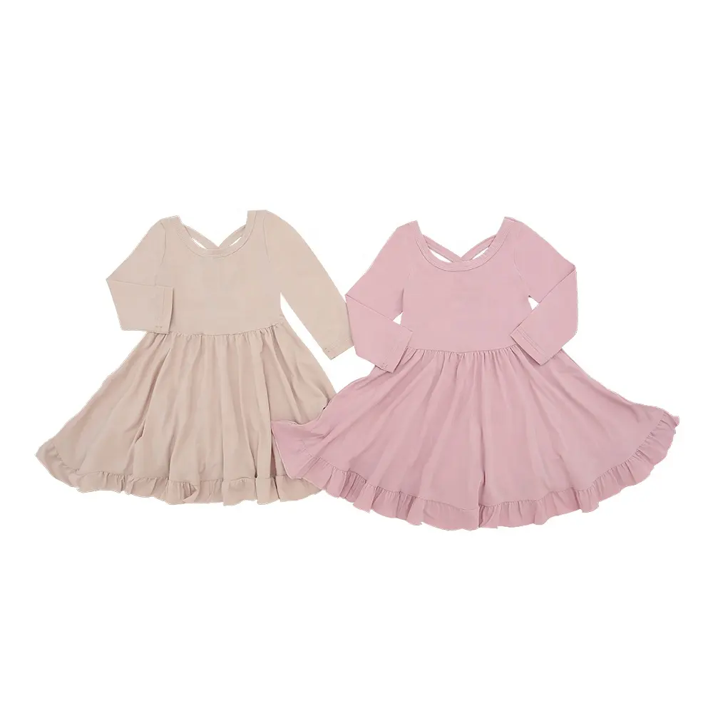 Kids Clothes with Ruffle Bow O-Neck Plain Color Girls Sleeveless Dress