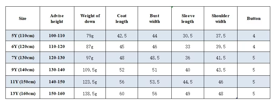 | Size | 110, 120, 130, 140, 150, 160 |