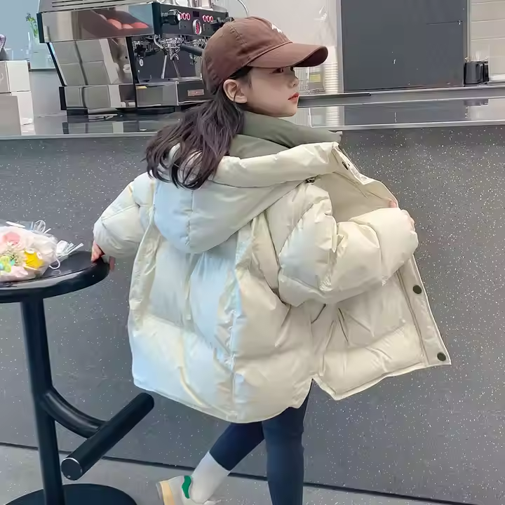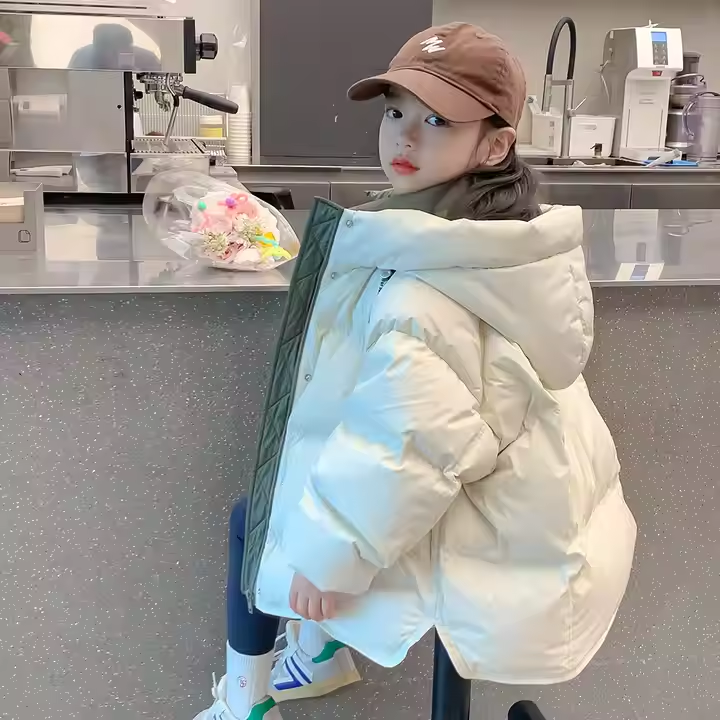 White Goose Down Kids Girls Outerwear Hooded Coat